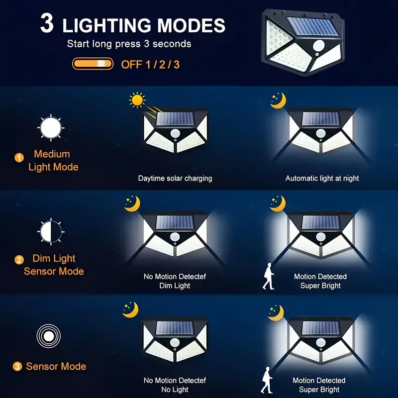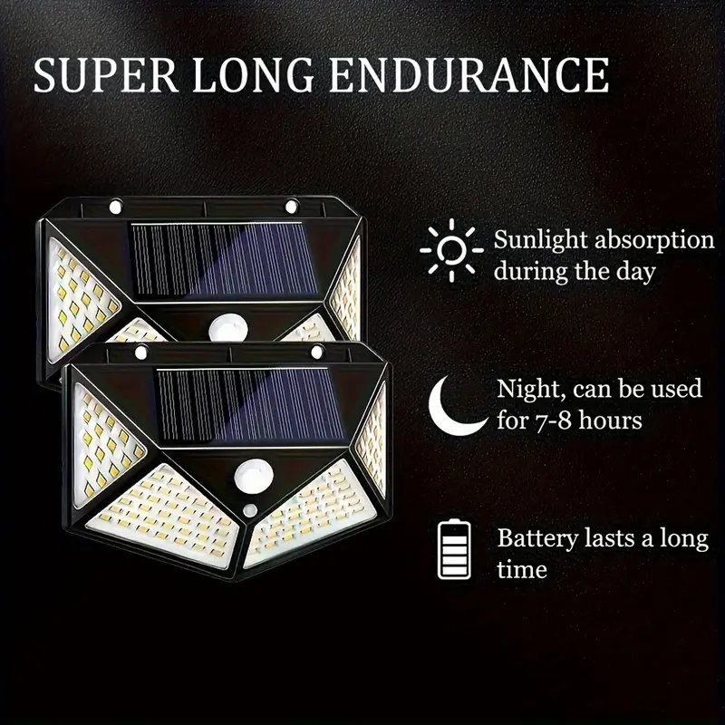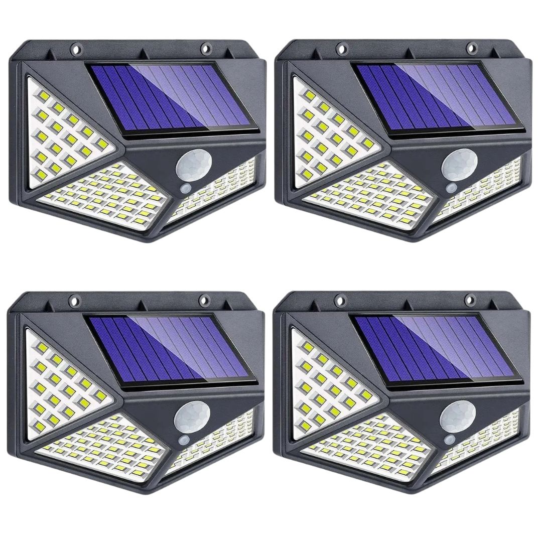 4 Pezzi – Faretti Solari da Esterno con Sensore di Movimento – 100 LED Super Luminos
