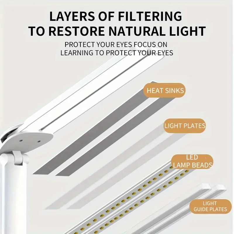 Scegli questa lampada da scrivania a LED per un’illuminazione efficiente, uno stile moderno e una serie di funzionalità integrate che ottimizzano la tua postazione di lavoro o di studio.
