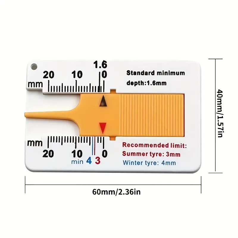 Tieni sempre sotto controllo l’usura dei tuoi pneumatici con questo pratico misuratore di profondità.