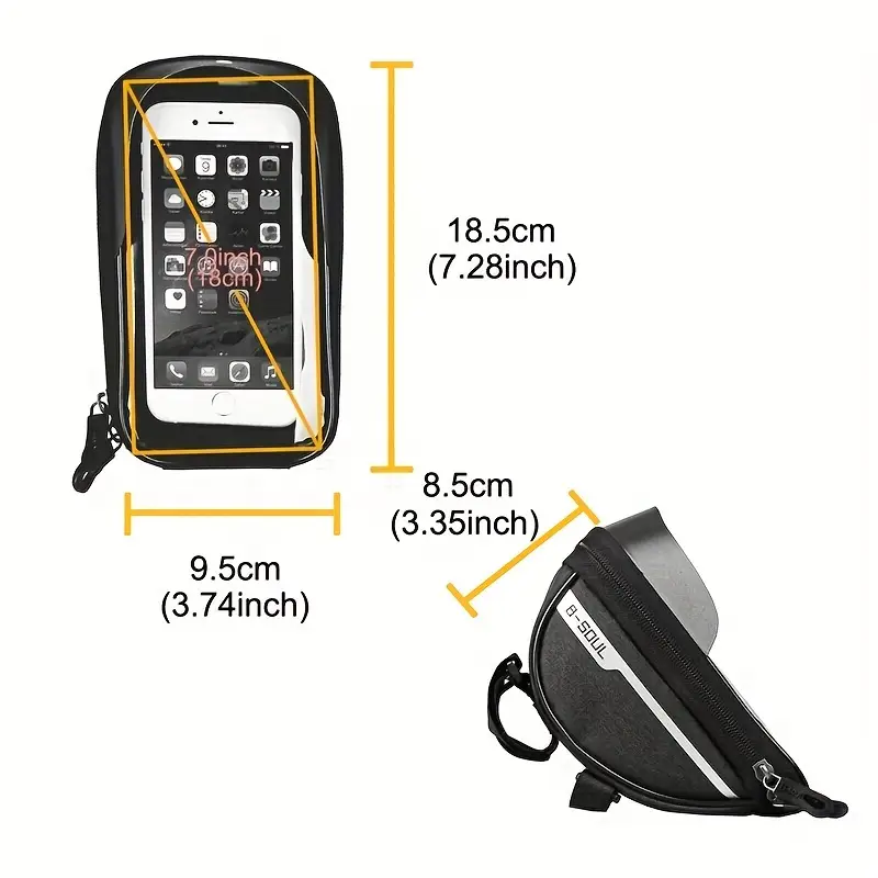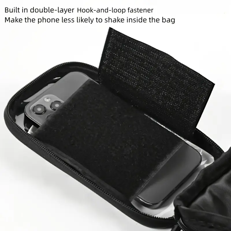 • Ampio spazio interno: Oltre al vano per il telefono, il porta telefono offre uno spazio aggiuntivo per contenere piccoli oggetti come chiavi, portafoglio o strumenti per la bici.
