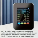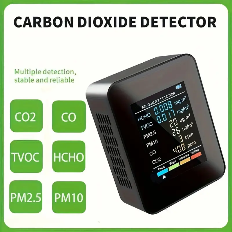 Rilevatore di Qualità dell’Aria 6 in 1 – Monitora PM2,5, PM10, HCHO, TVOC, CO e CO₂ per Ambienti più Sani