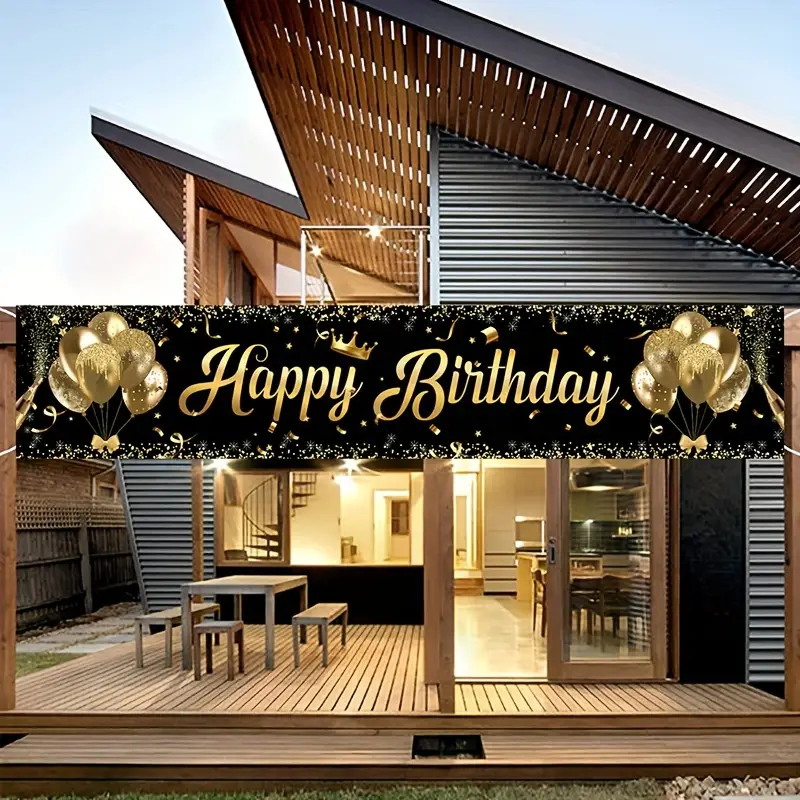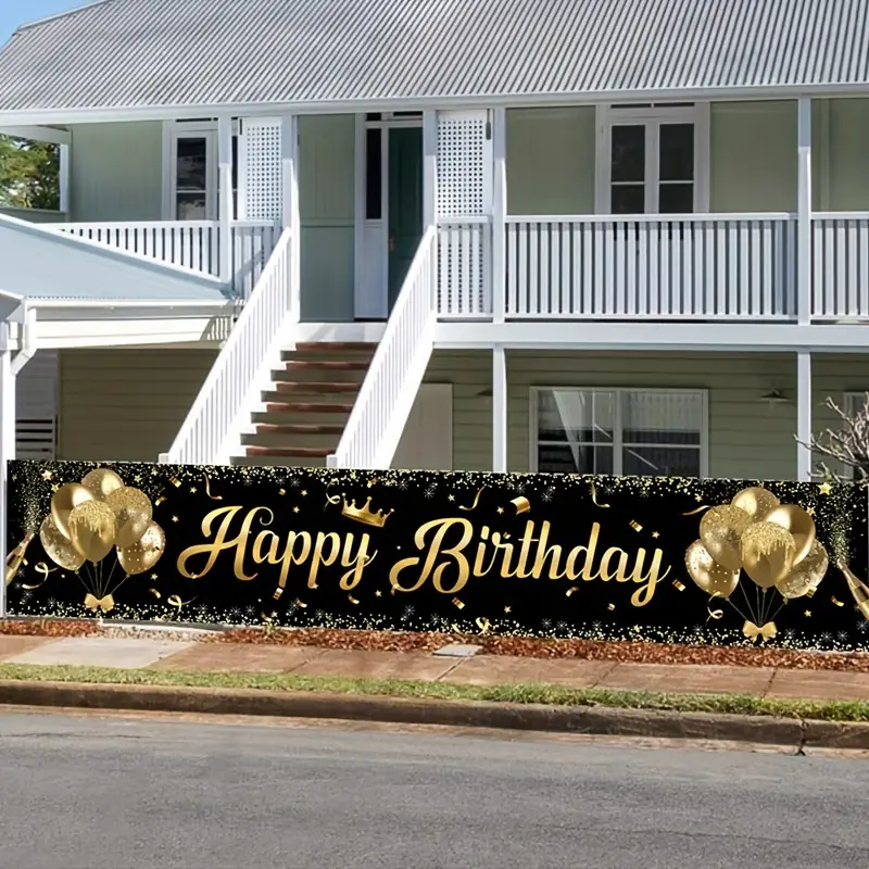 Striscione “Happy Birthday” Nero e Dorato da 2 Metri